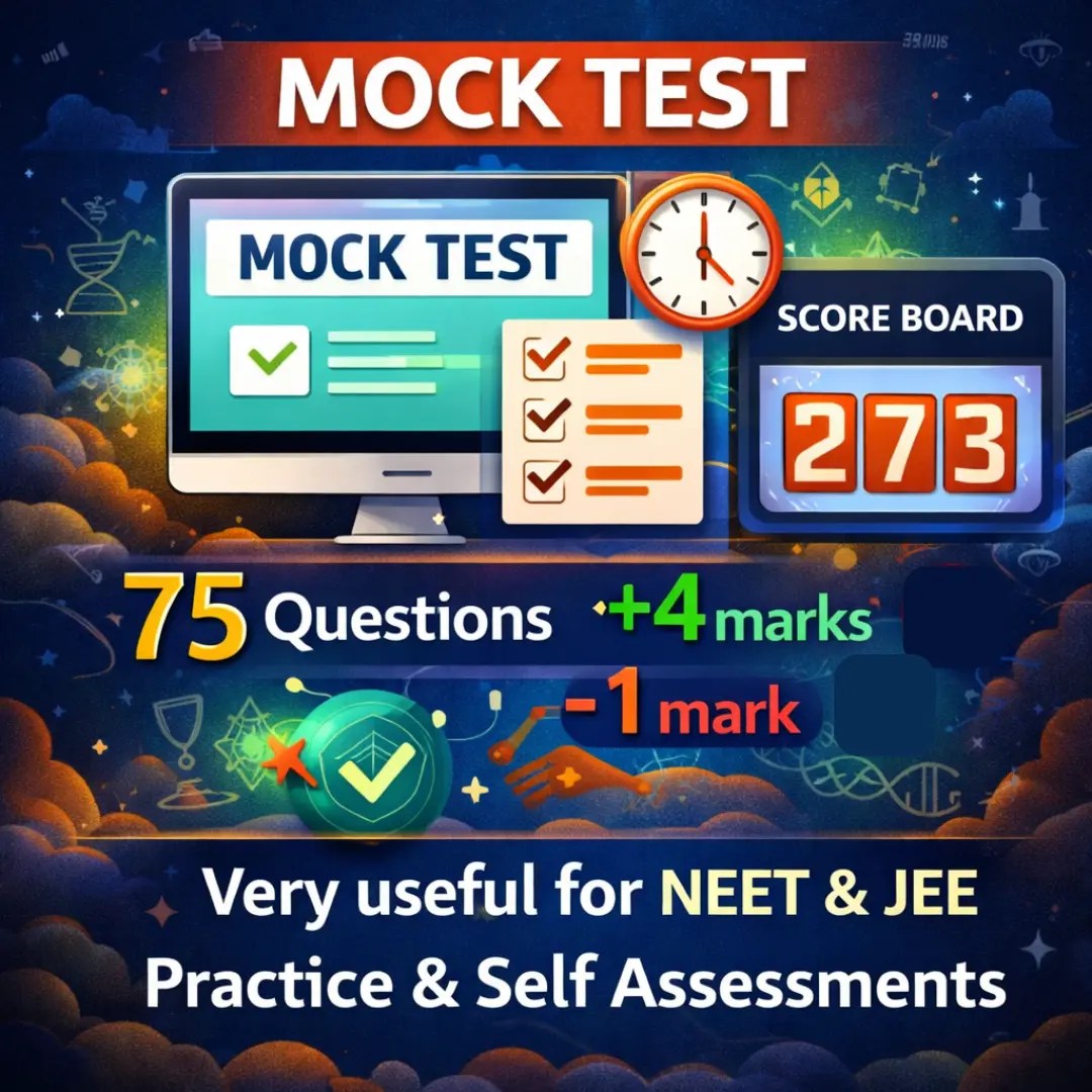 Mock Tests provide NEET & JEE–patterned practice exams with real-time exam simulation. Designed to improve speed, accuracy, and confidence, they help students analyze strengths, identify weak areas, and adapt strategies well before the actual exam. Suitable for unit tests, cumulative tests, and full-length mocks.